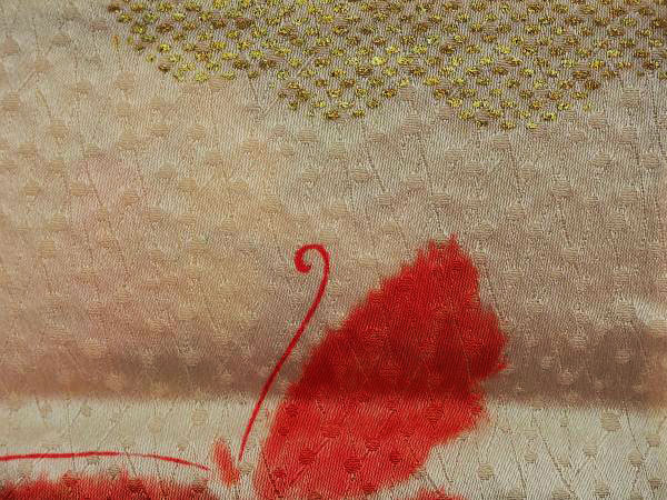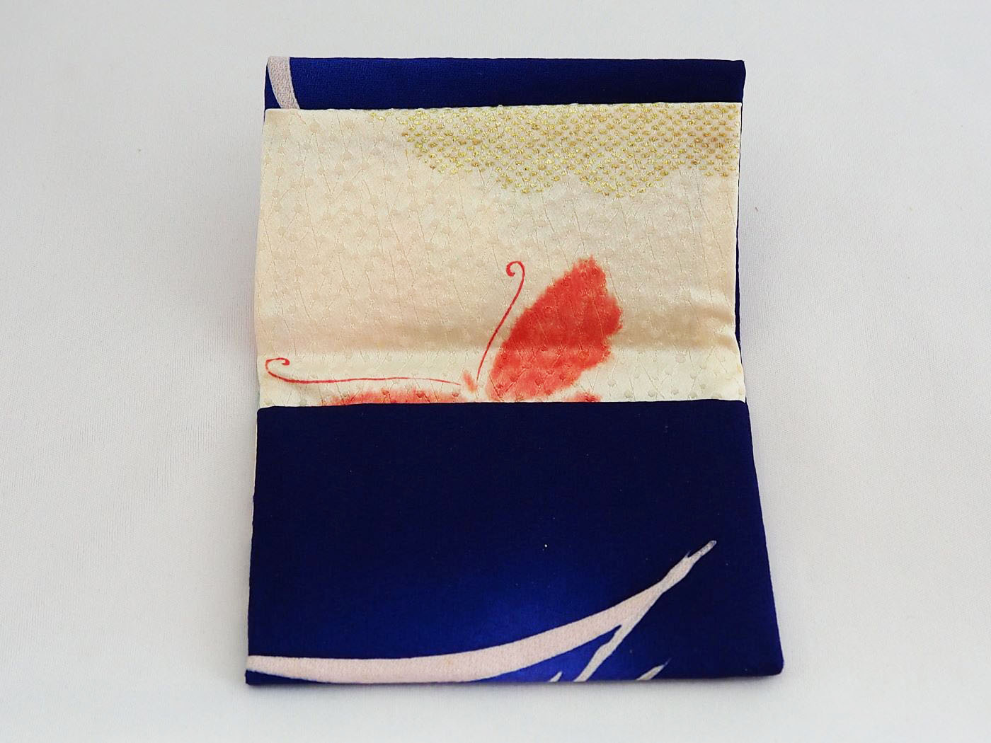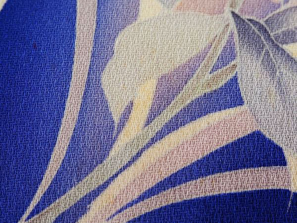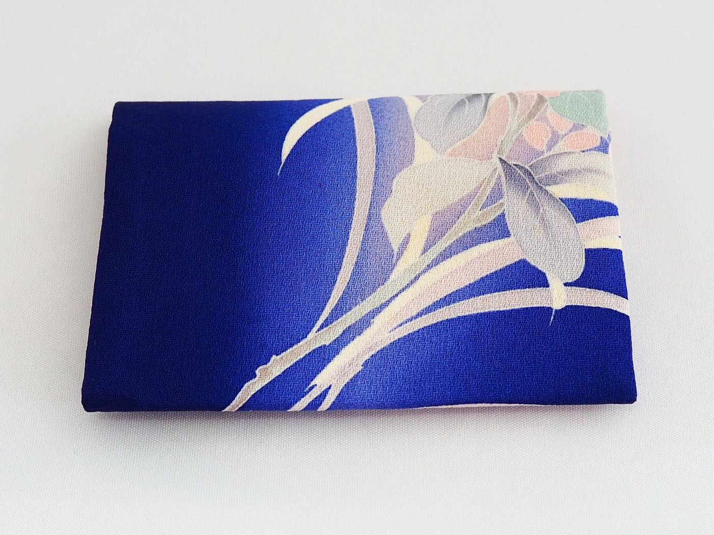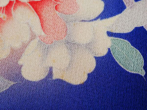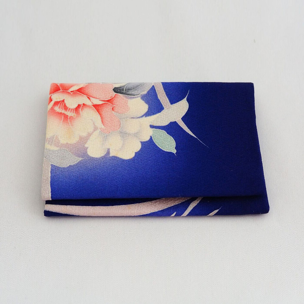 ロイヤルブルーの生地に淡い色でシャクヤクが描かれています。
