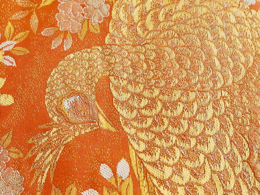 孔雀と桜の文様の錦織でゴールドの孔雀がゴージャス。