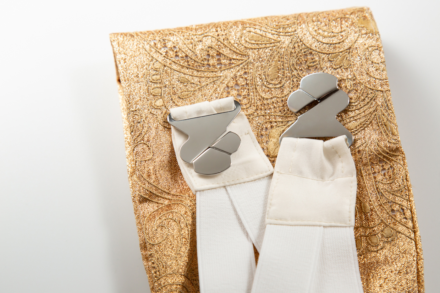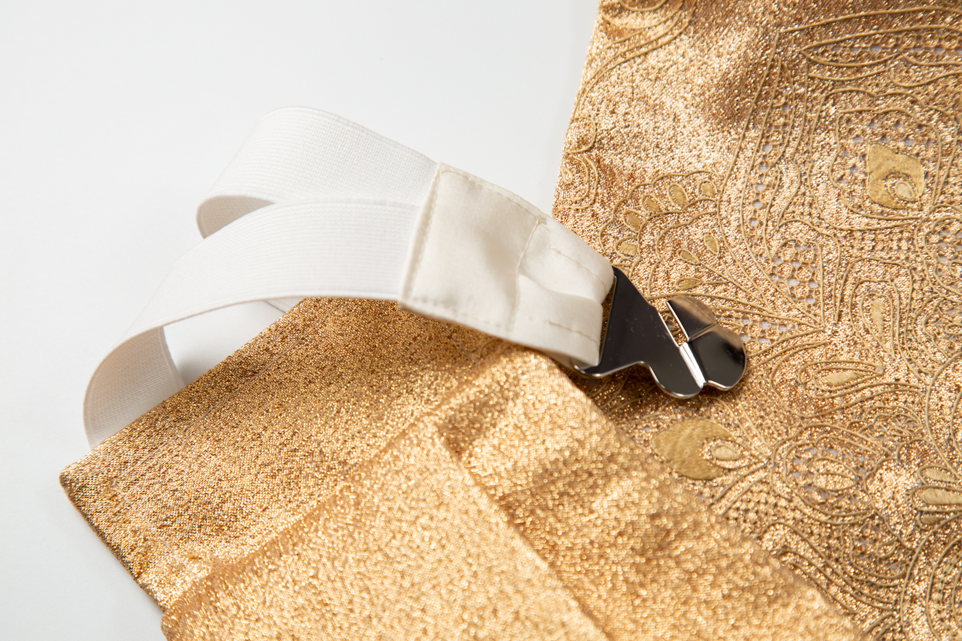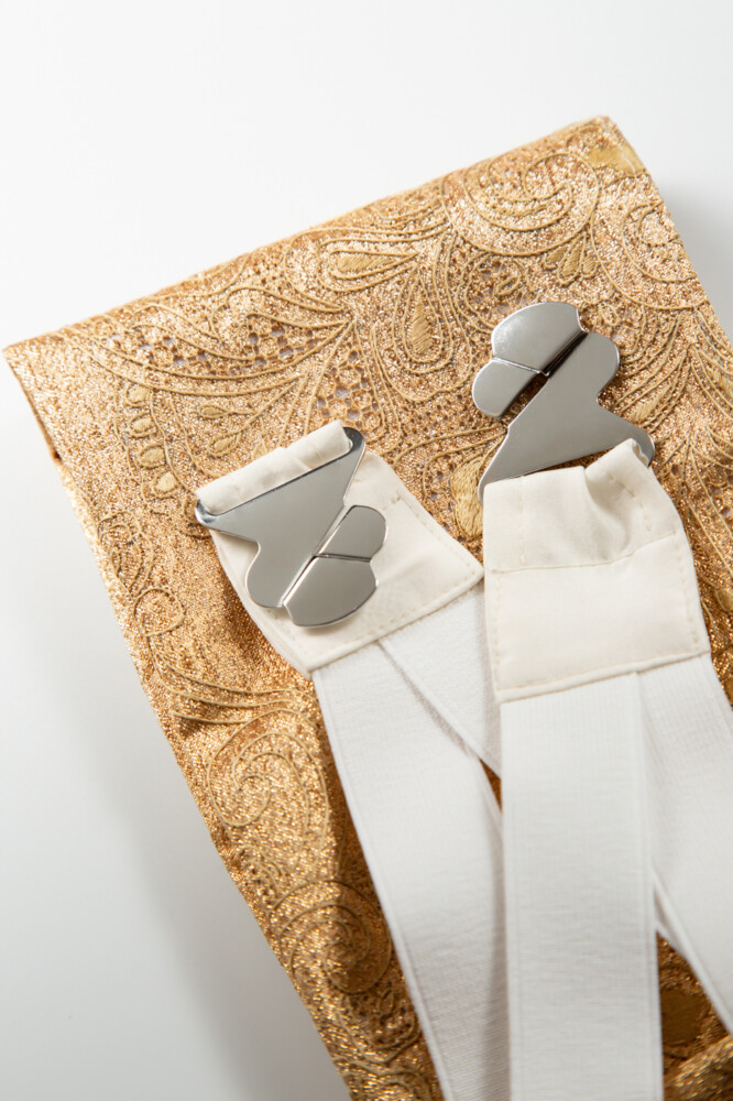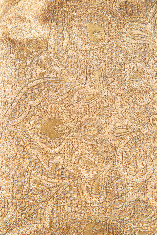 正倉院文様の中の華文で、スワトータイプの金糸の刺繍が特徴的です。