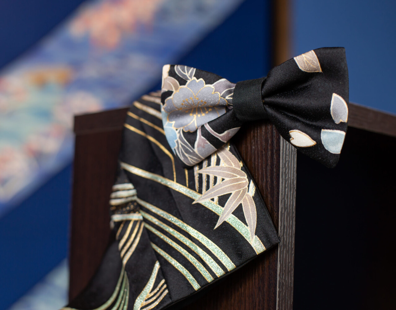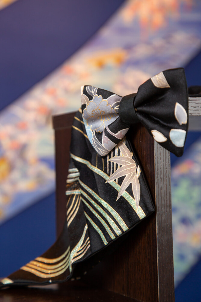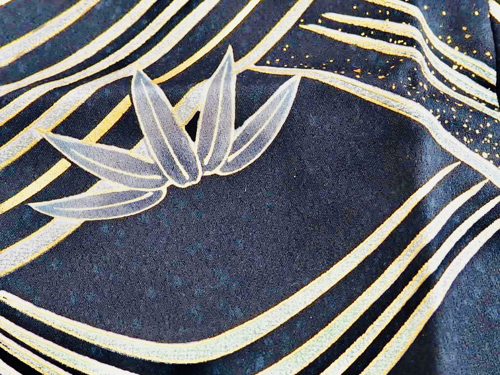 黒地に流水、桜や笹が描かれエレガントな印象。