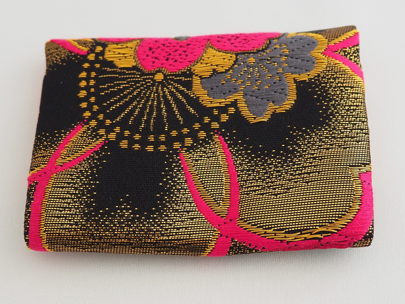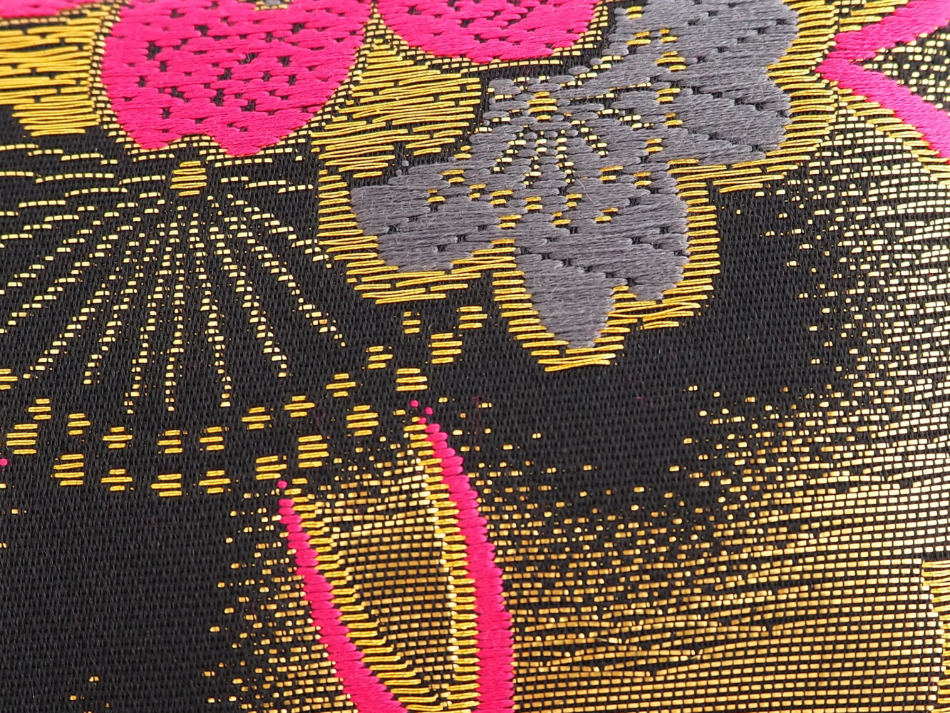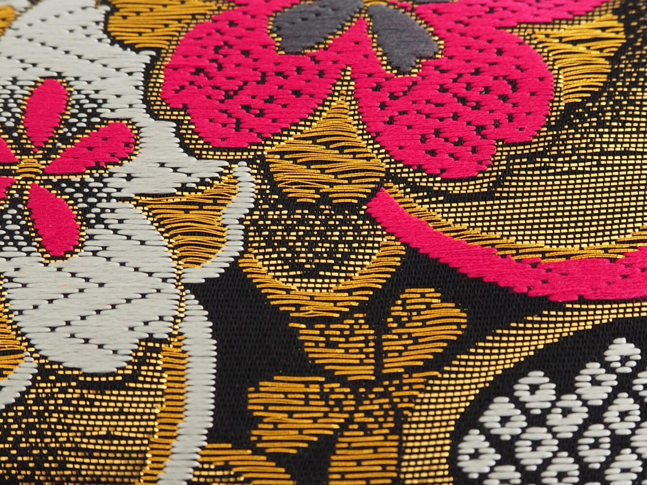 帯地にマゼンダピンク、ゴールド、ホワイトの桜柄がゴージャス