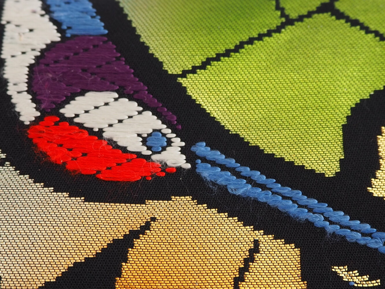 飛鶴に波模様、ステンドグラス風