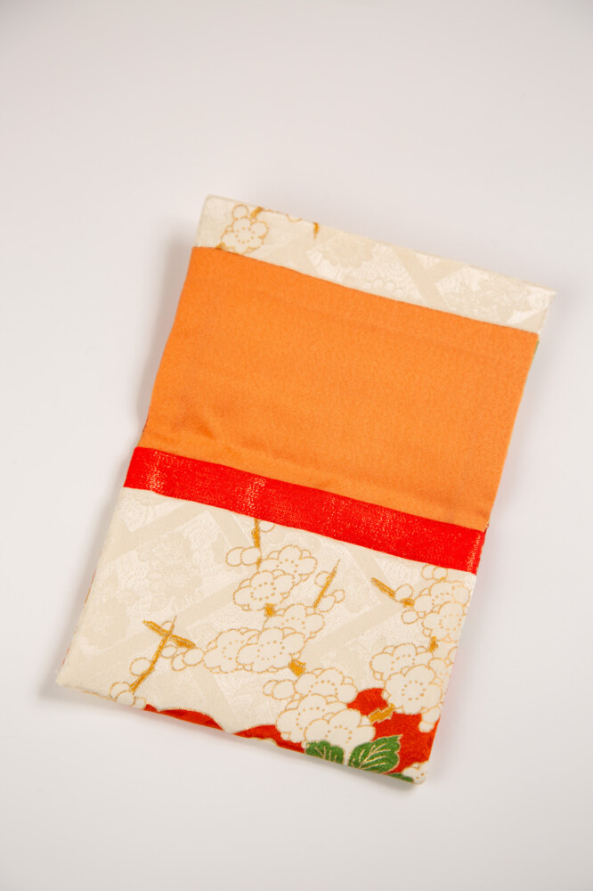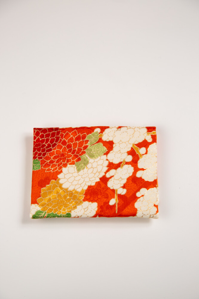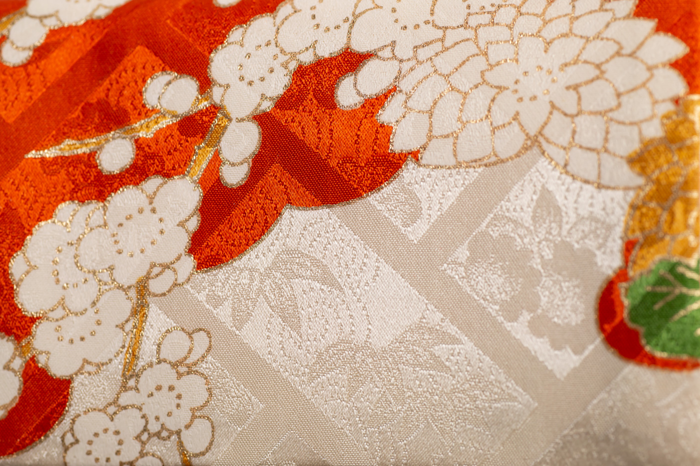 菊と梅の花、雲取りの画面を切り取り、無地場では地模様が浮かんで見えています。