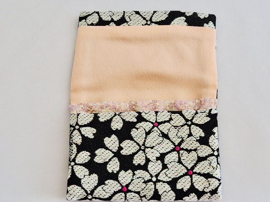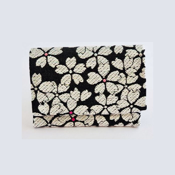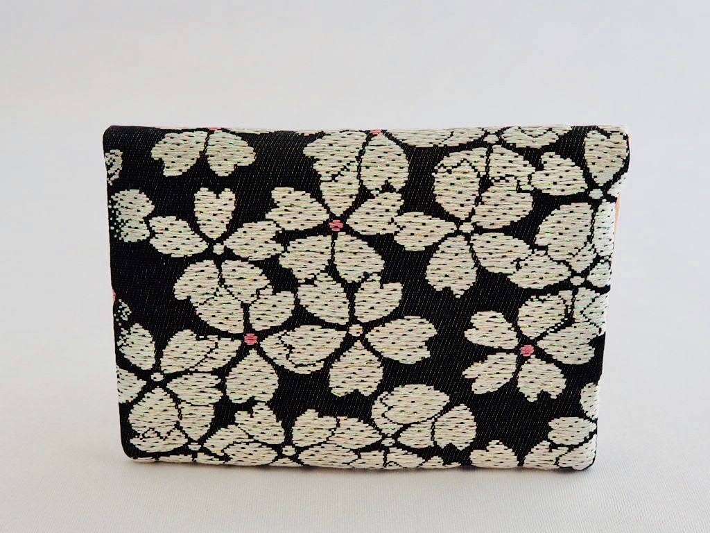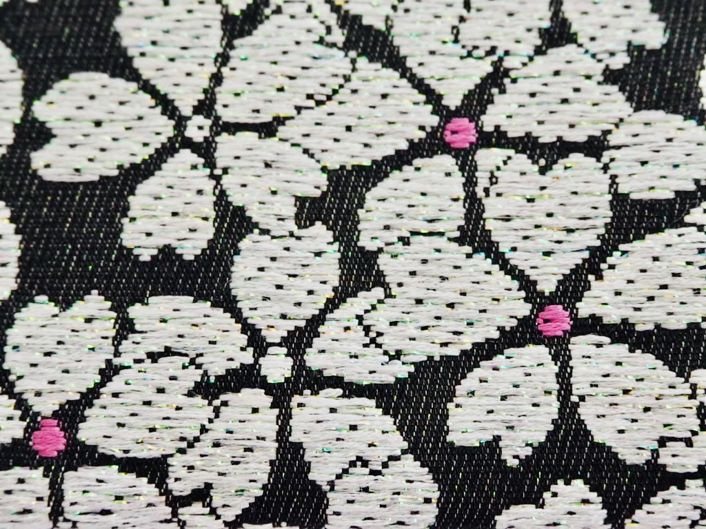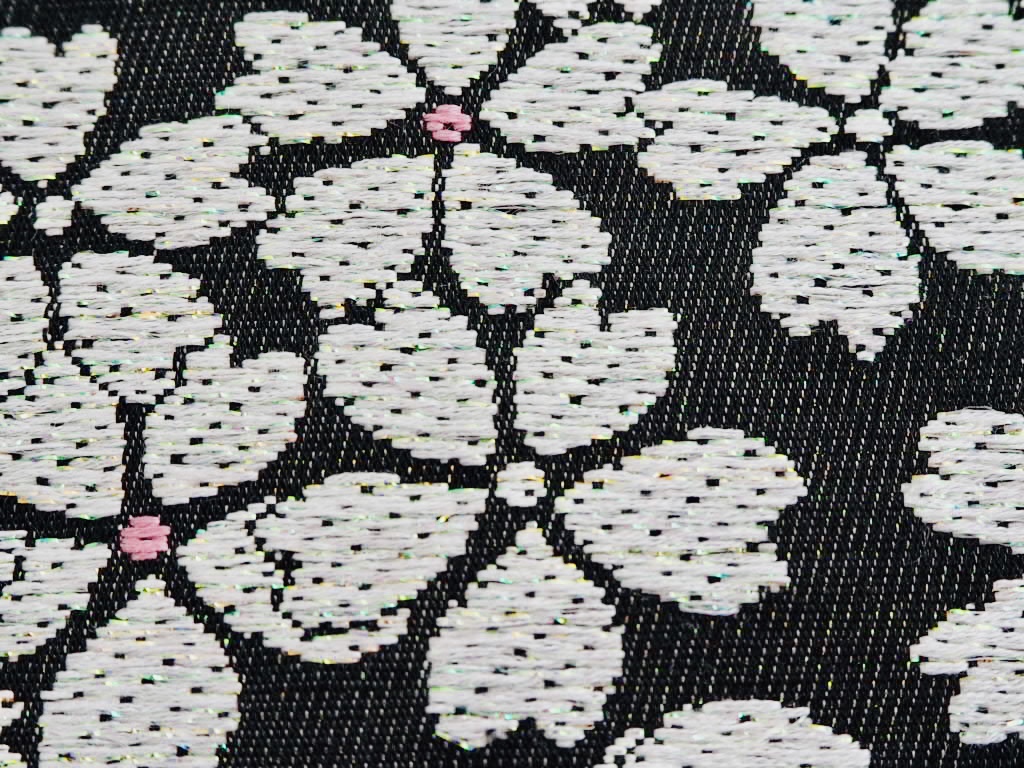 黒地に白のラメが入った桜を織り出し、ピンクの花芯が愛らしく、豪華に仕上がりました。