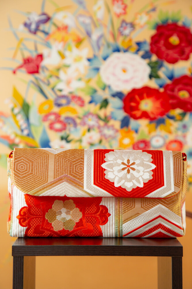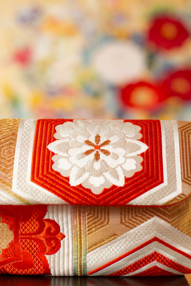 その甲羅を意匠化した亀甲の中に華紋を配した華やかでお目出度いお柄です。