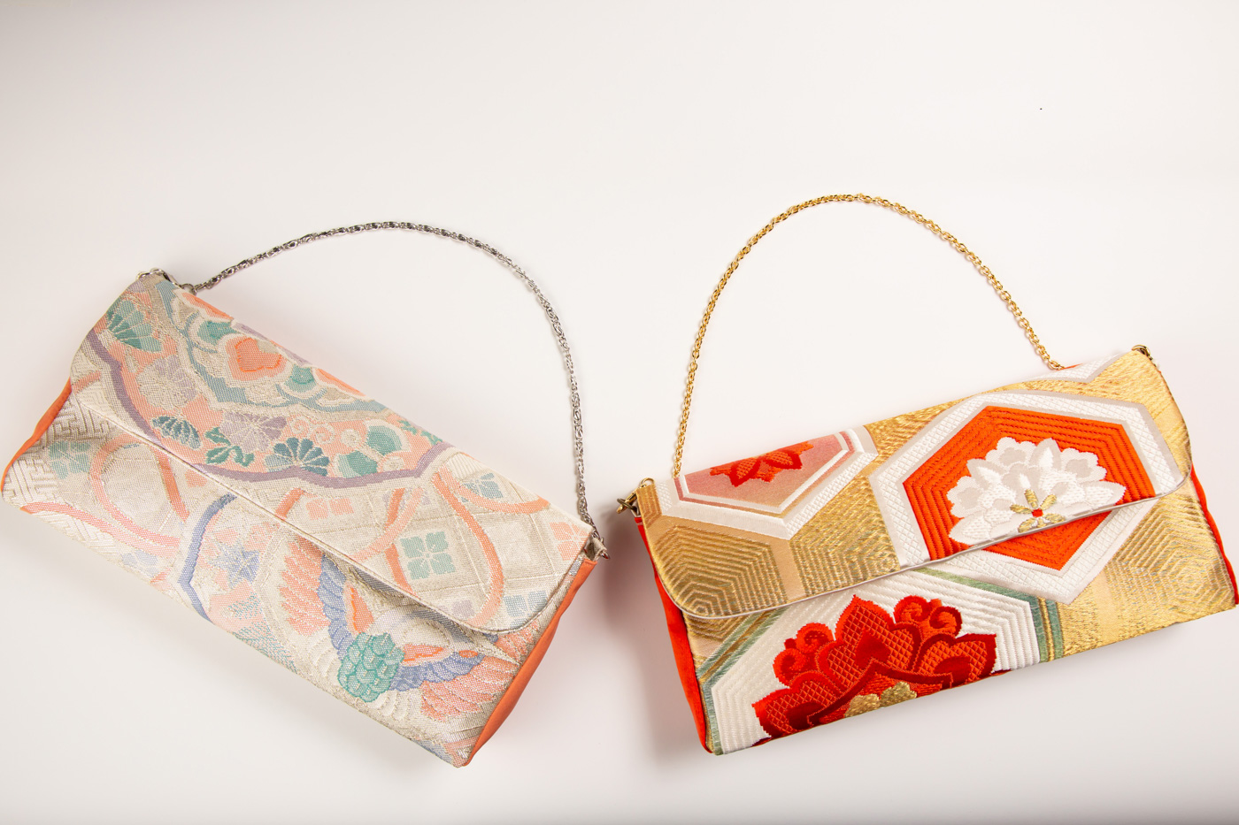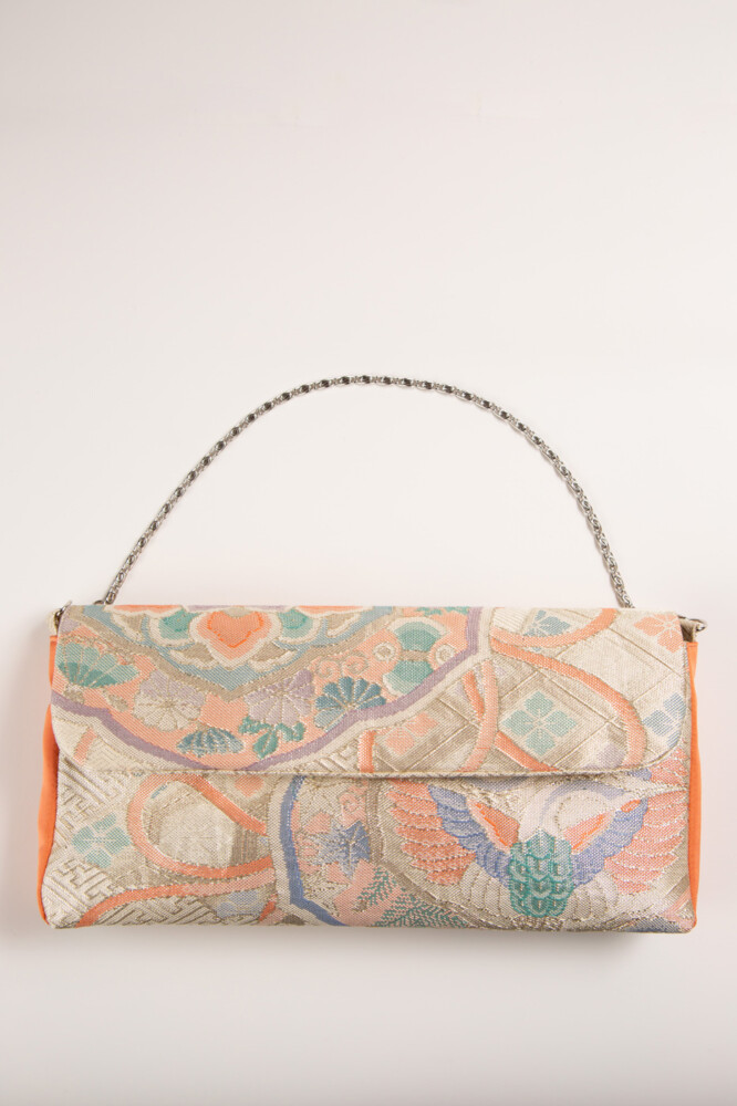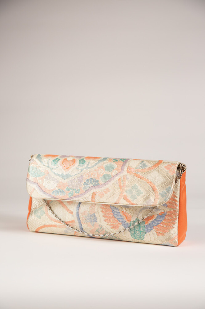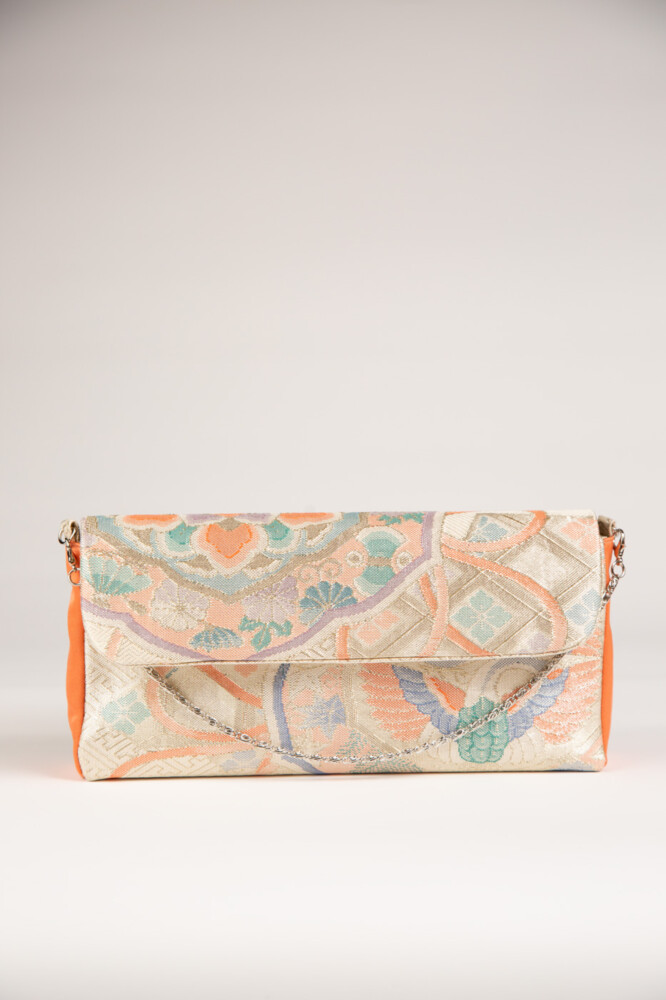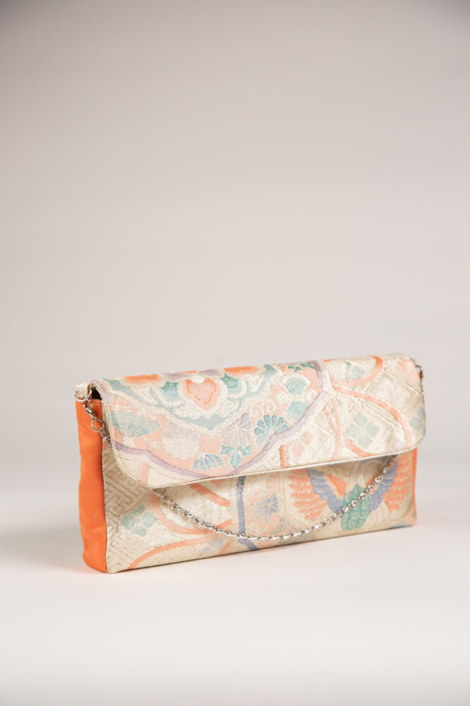 輝きを抑えた箔糸を使い、重厚で雅やかな印象の帯地を使ったクラッチバッグ。