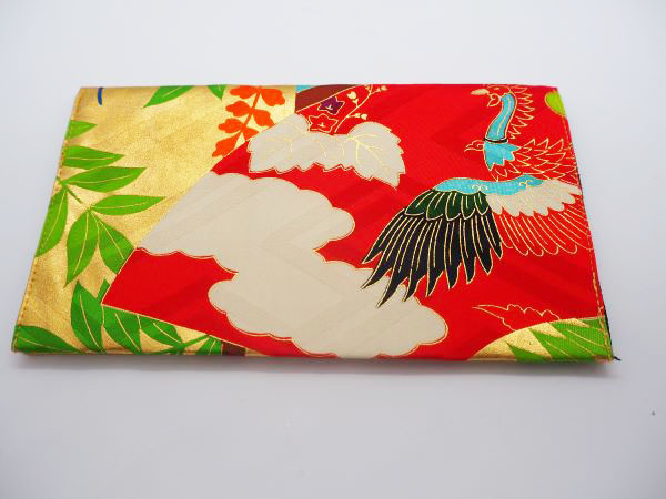赤い扇面に鳳凰が描かれ、おめでたい雰囲気。