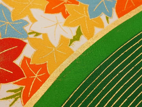 繁栄開運の吉兆とされる扇面の中に紅葉文、菊、あやめ、牡丹などの花を散りばめてある文様。
