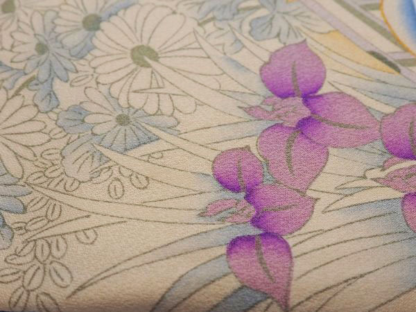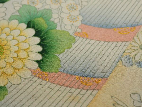 梅、菊、牡丹、紅葉などの四季草花文様で優しい色合い。