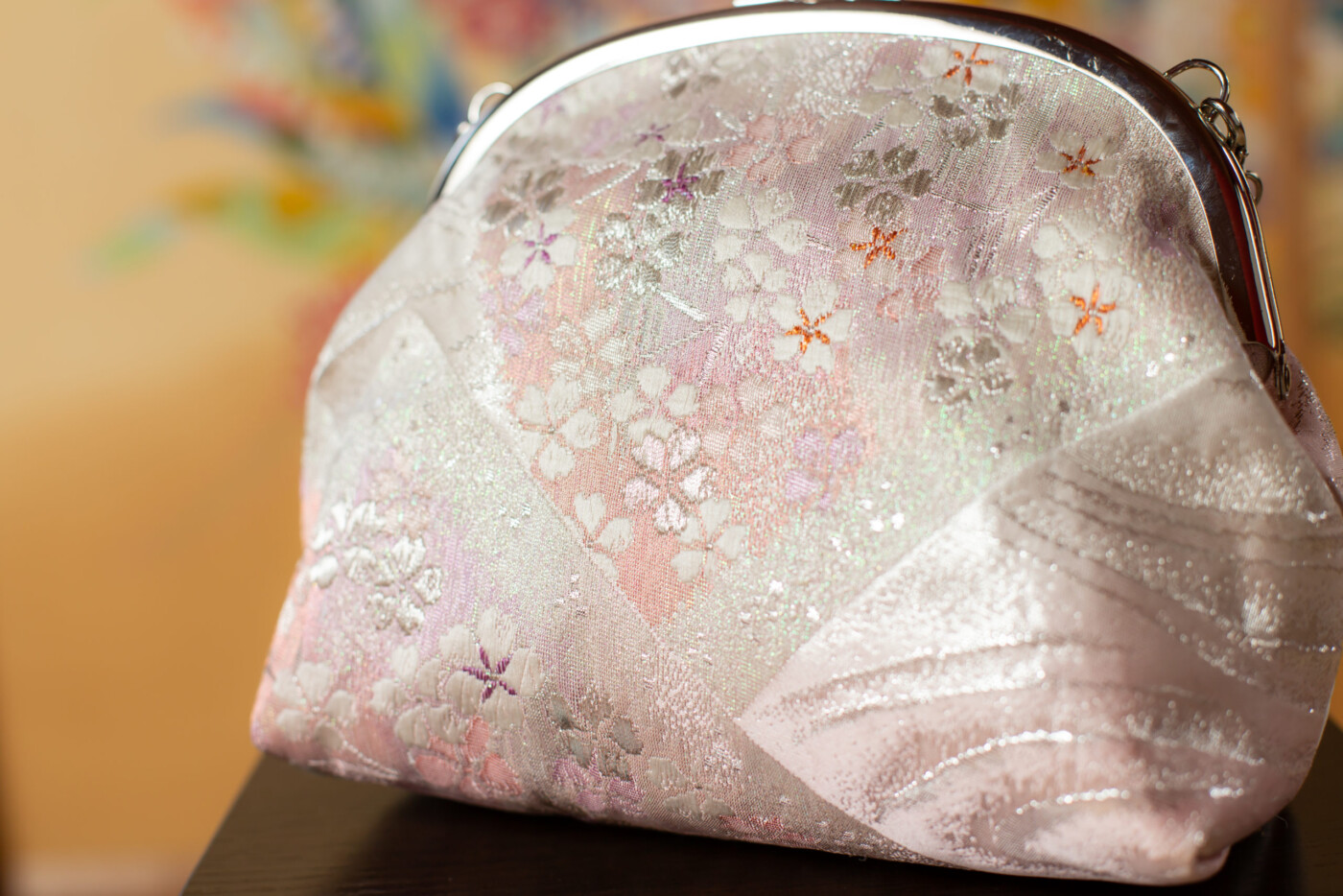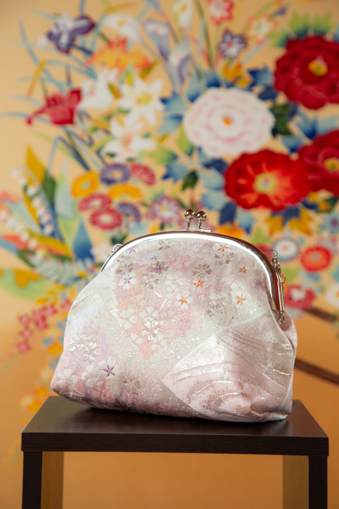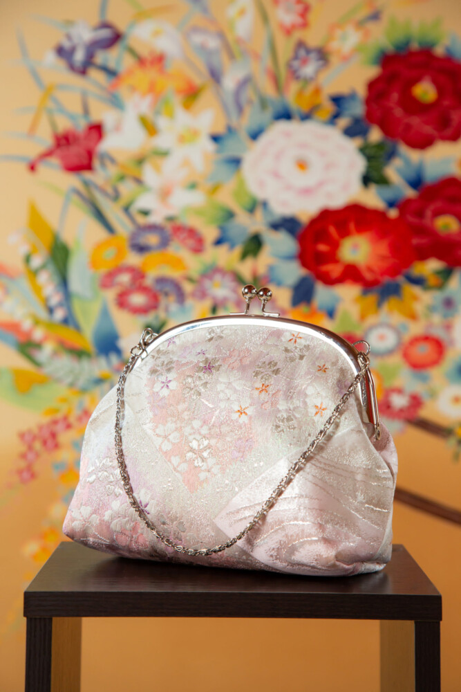 色紙取りされた小桜が織り出され、清楚で可愛い印象。