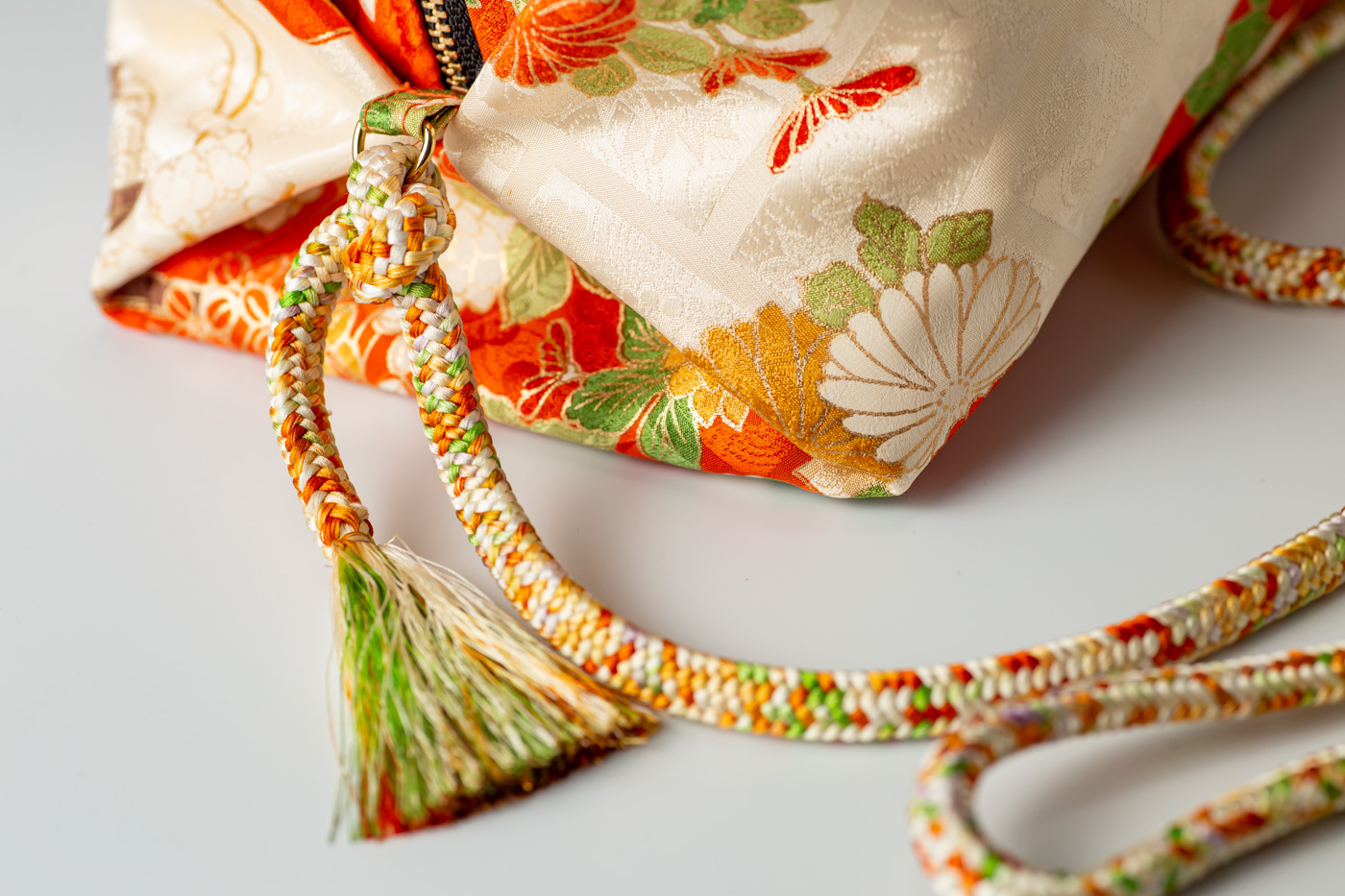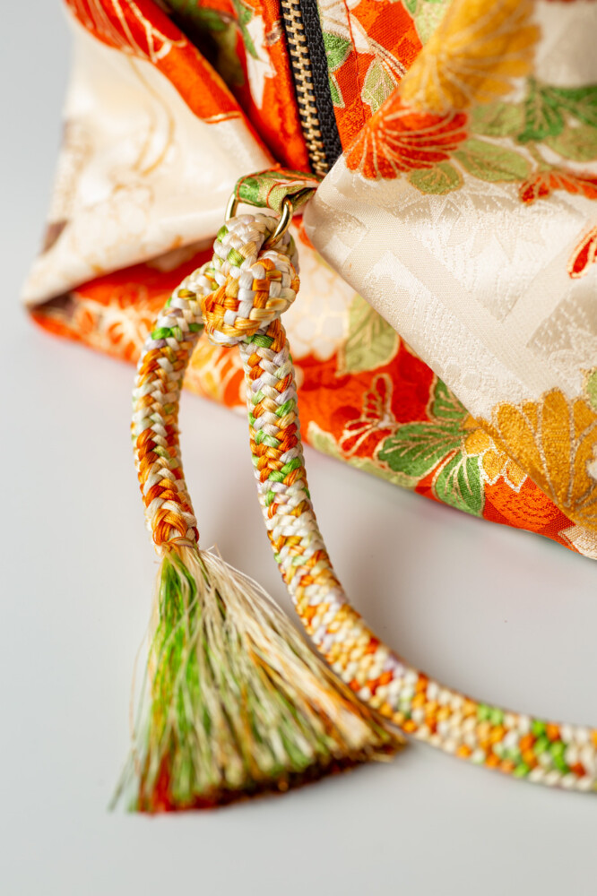 帯締も正絹で、このバッグの色合いにピッタリのものが見つかりました。