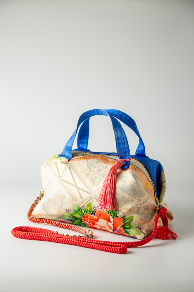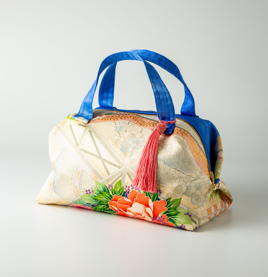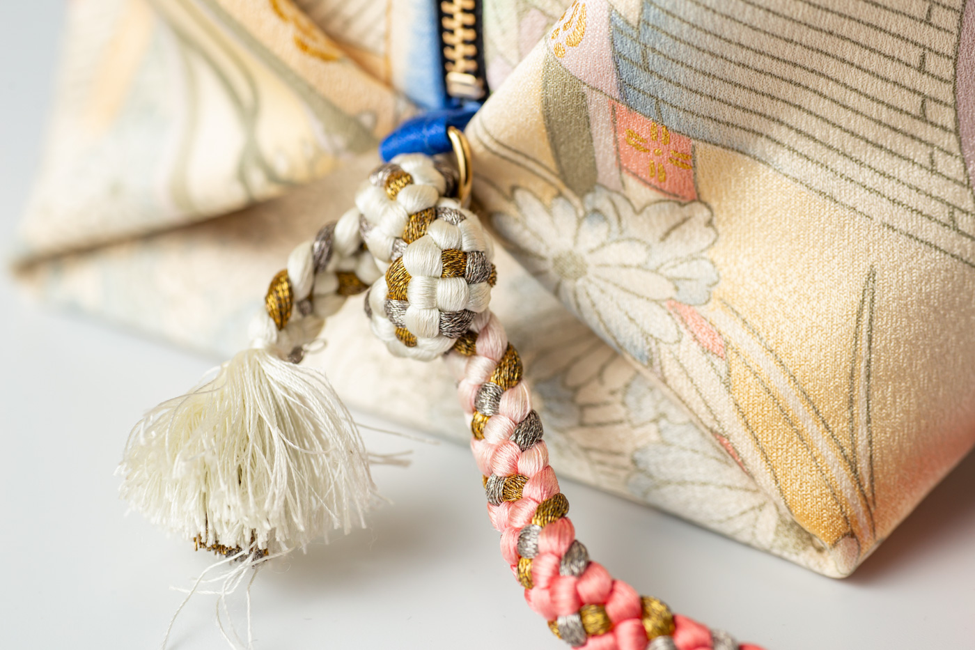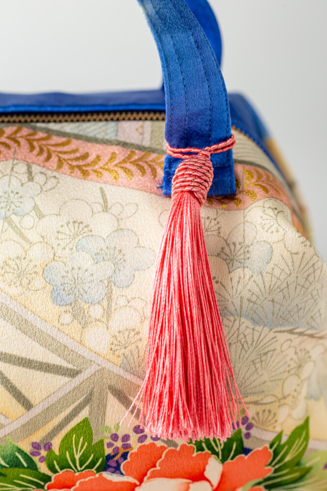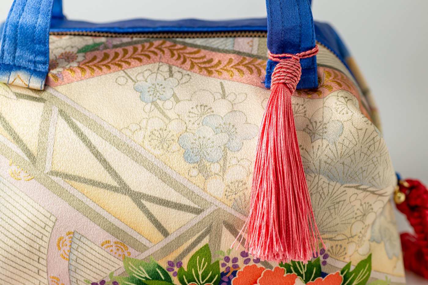 梅、菊、牡丹、紅葉などの四季草花文様で優しい色合い。