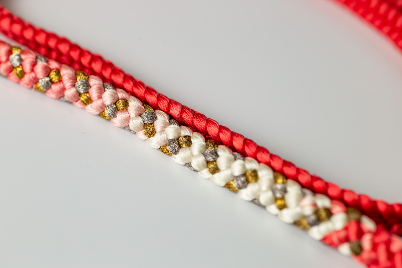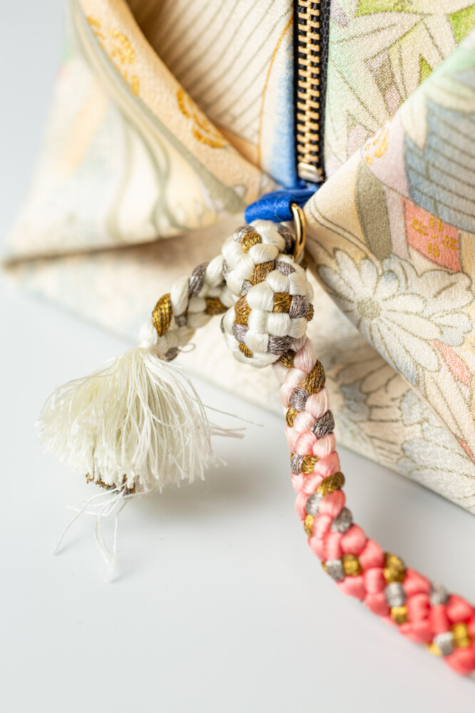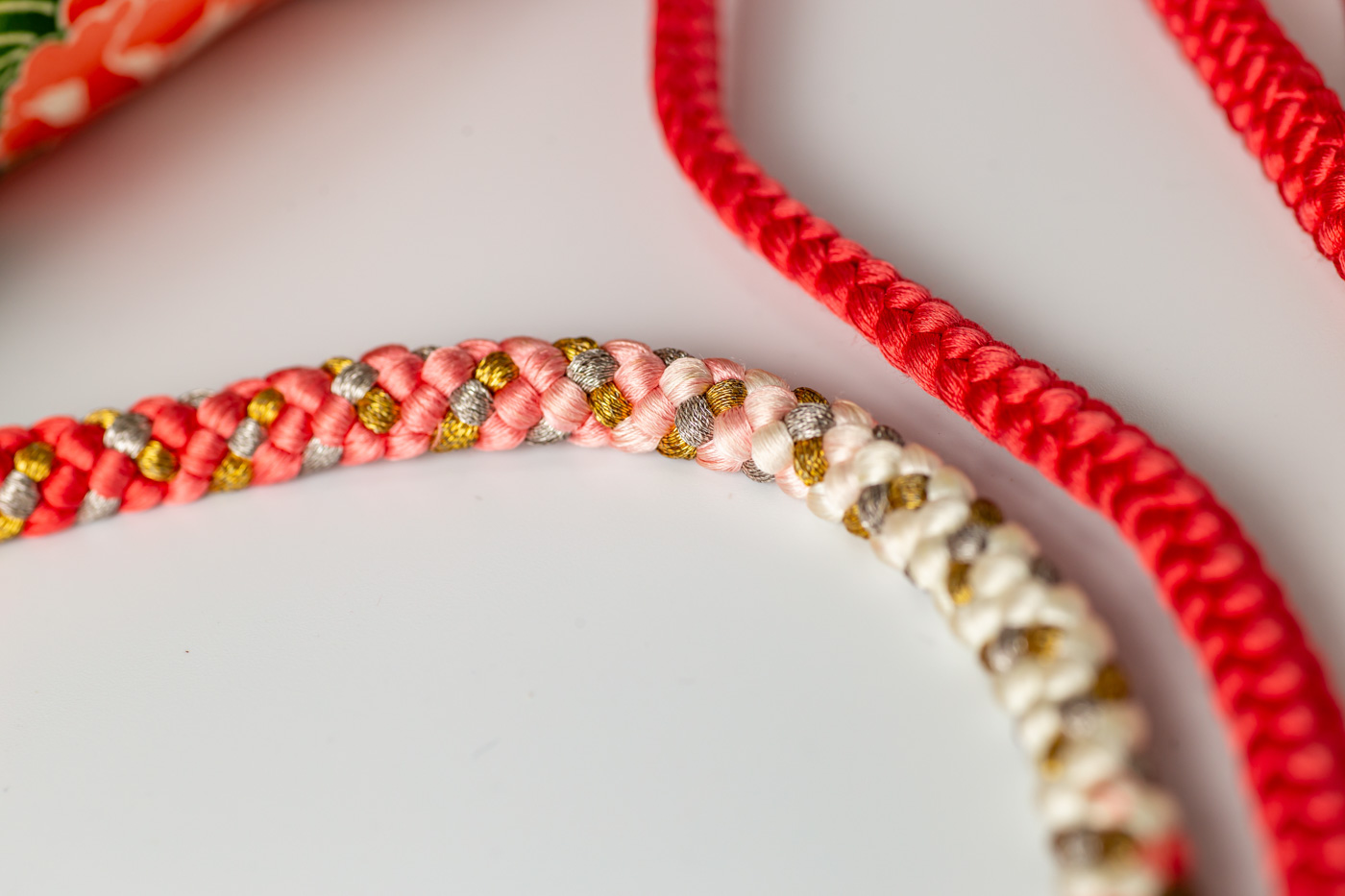 牡丹の色に合ったオレンジピンクの正絹の帯締めが見つかりました。