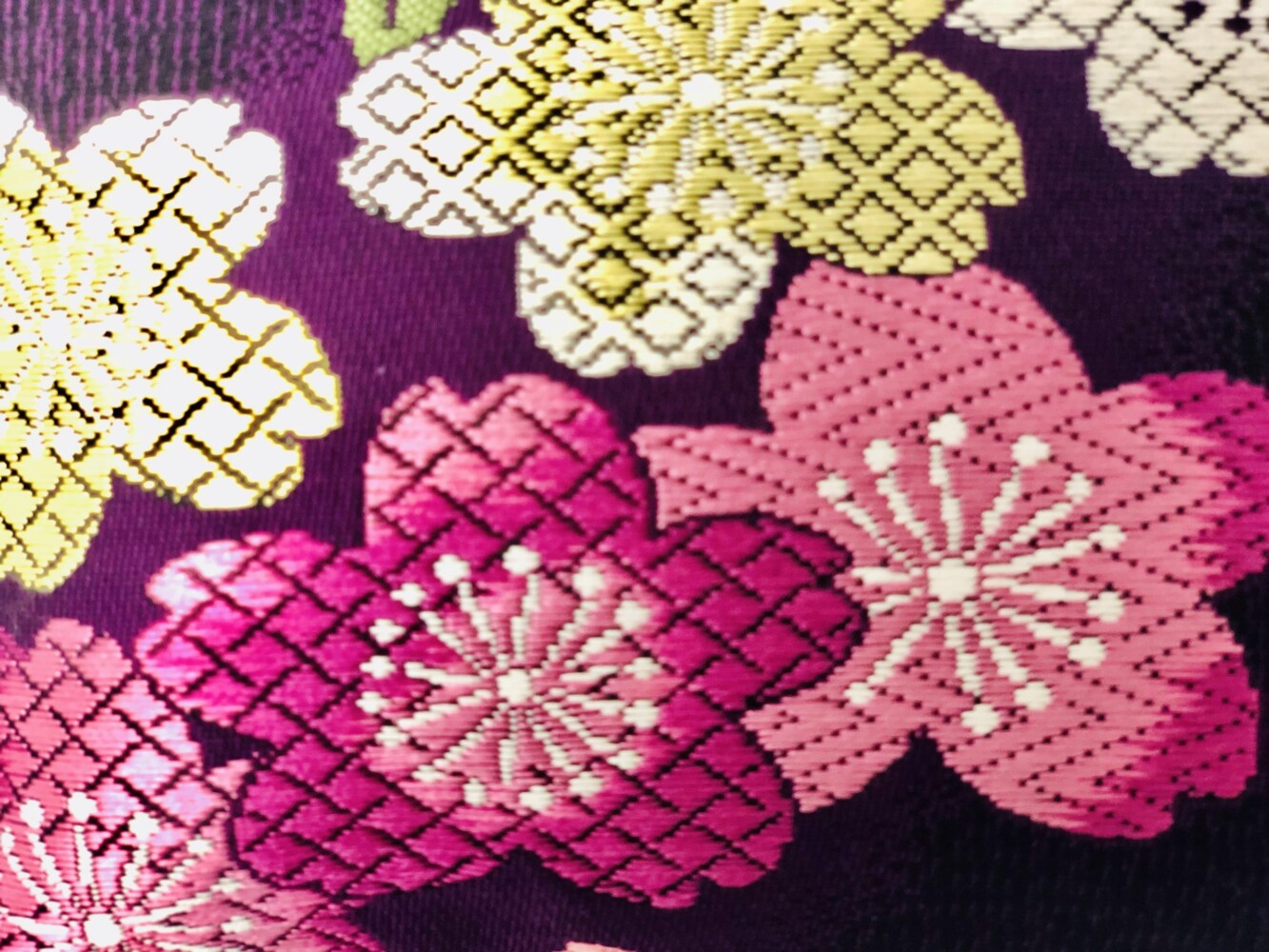 桜花文(おうかもん)ともいい、さくらの「さ」は稲、「くら」は神が宿る座を意味し、豊作を願って文様化された桜は季節を問わず使えます。