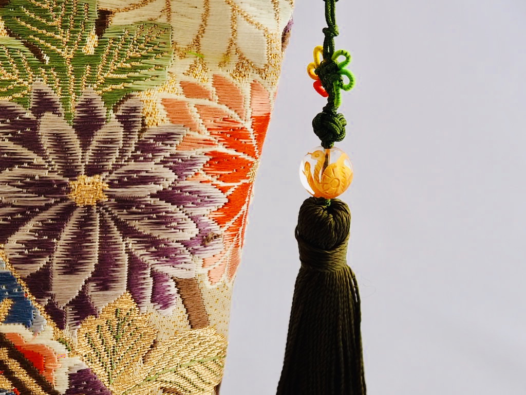 タッセル:モスグリーン 素材:シルク100%、水晶(「玄武」彫刻)