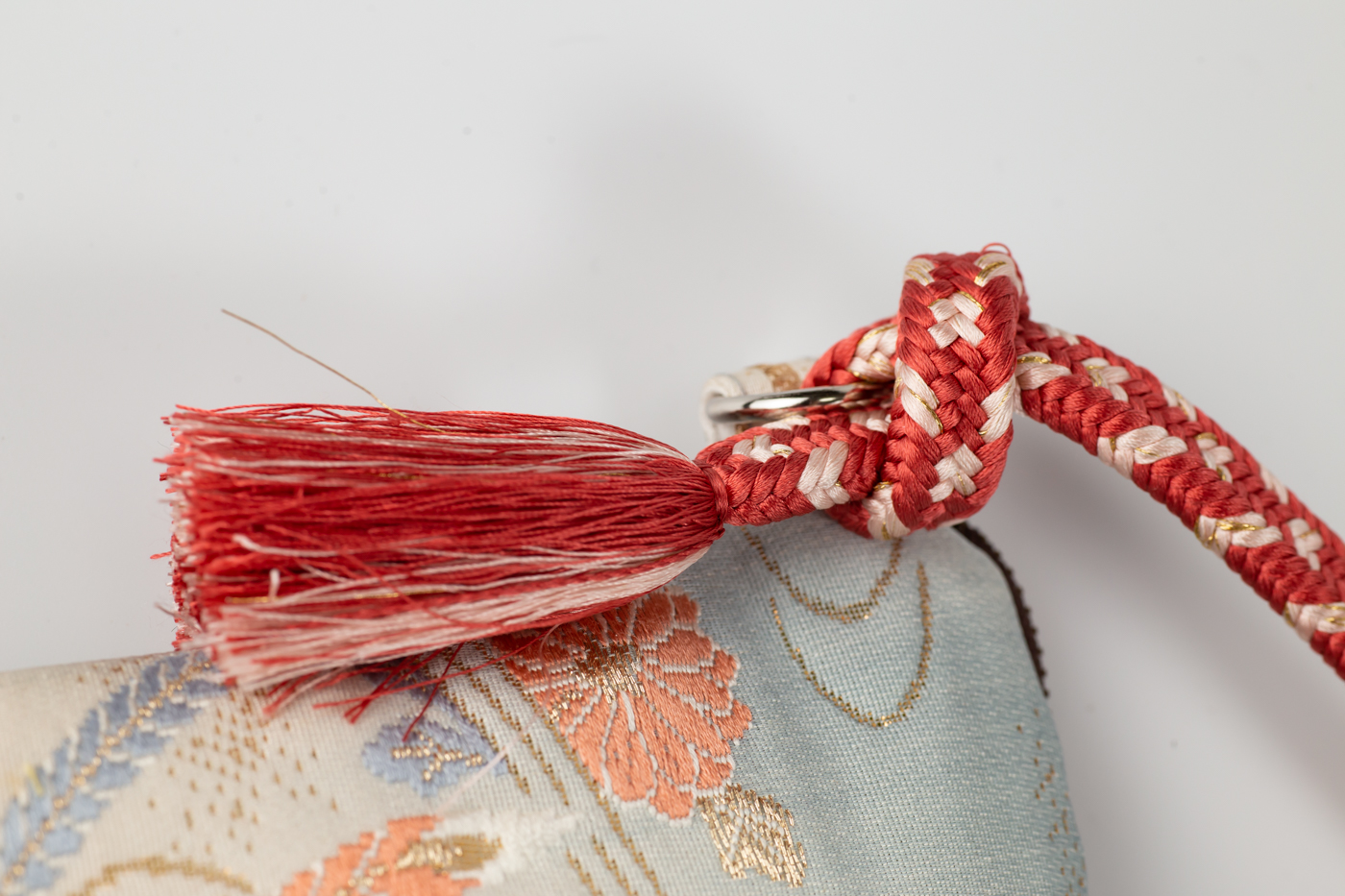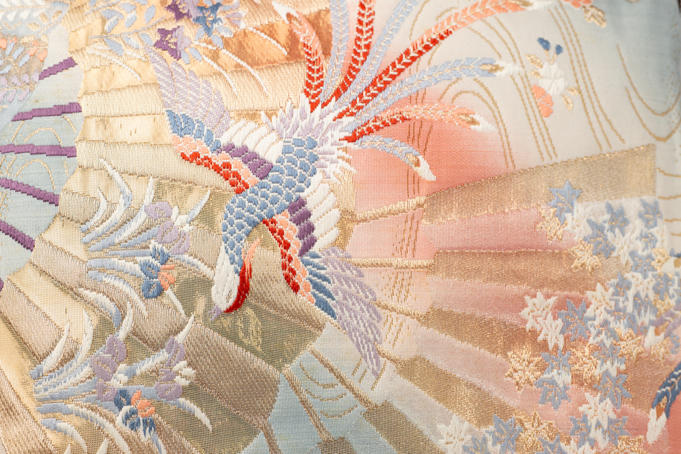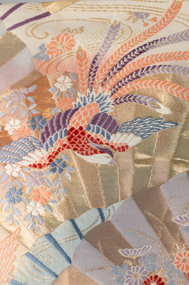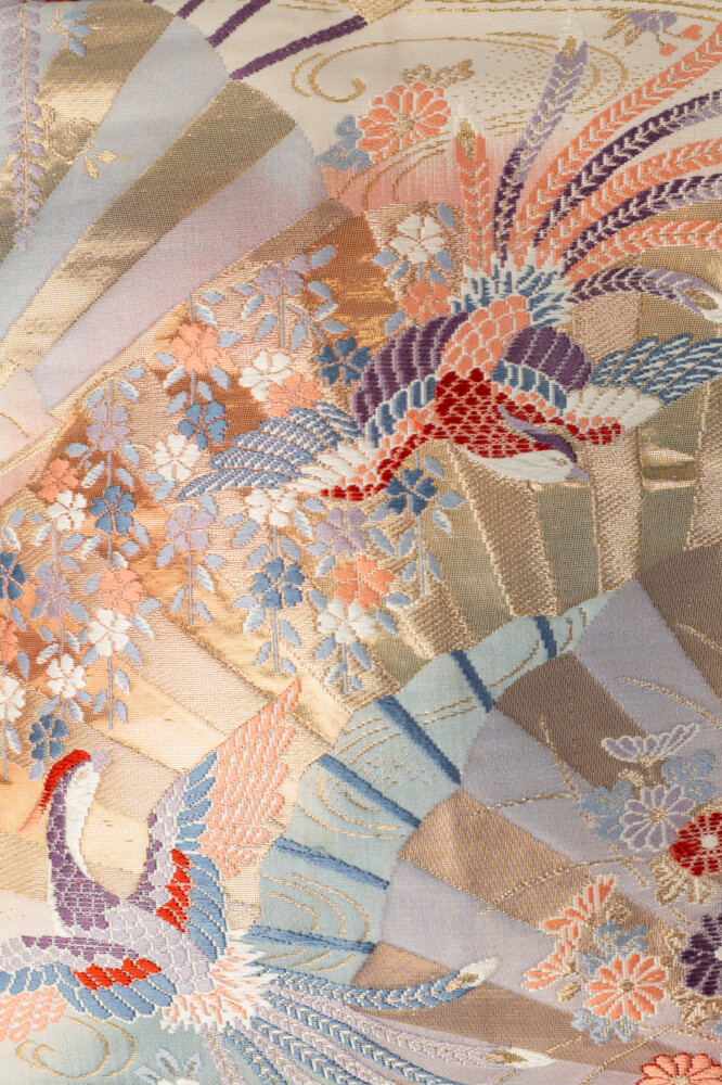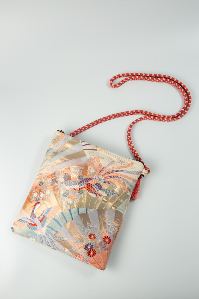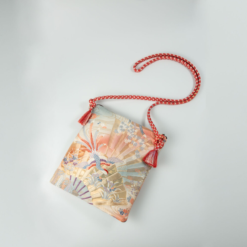 扇面に季節の草花や鳳凰が織り込まれたゴージャスなポシェット。
