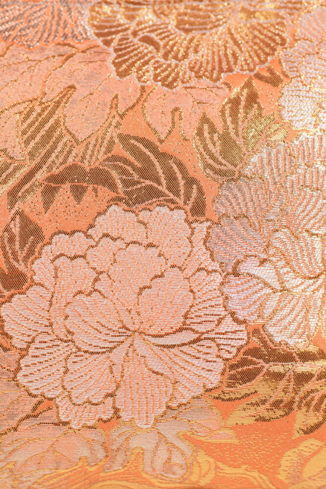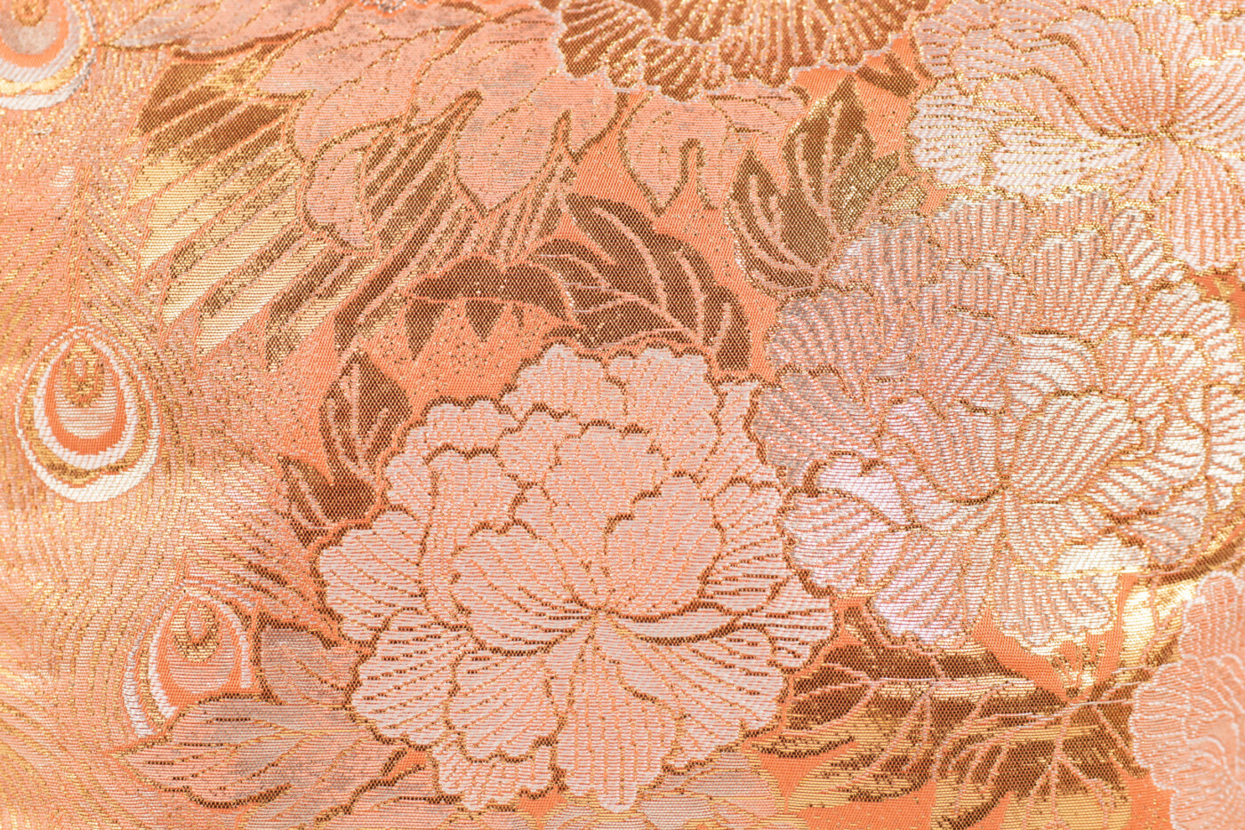 孔雀の羽根と牡丹の文様を切り取っています。