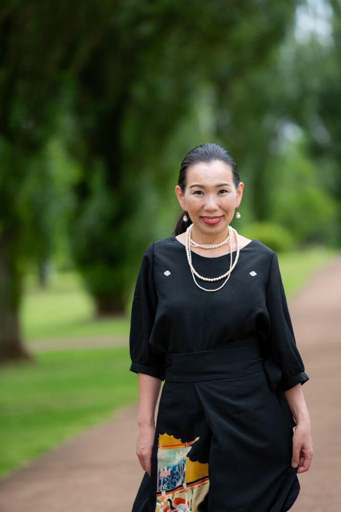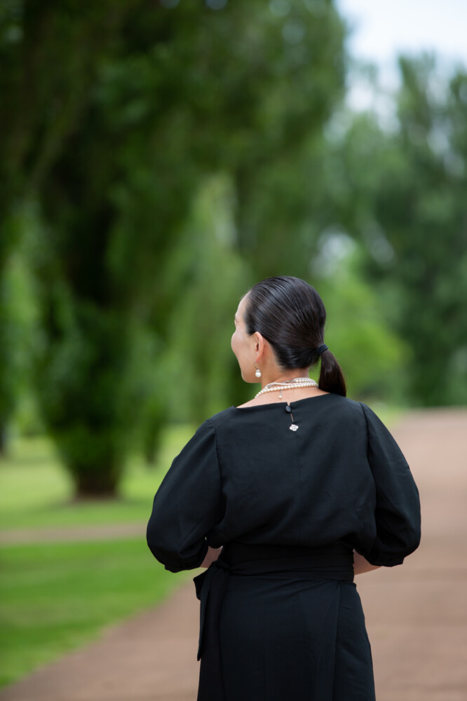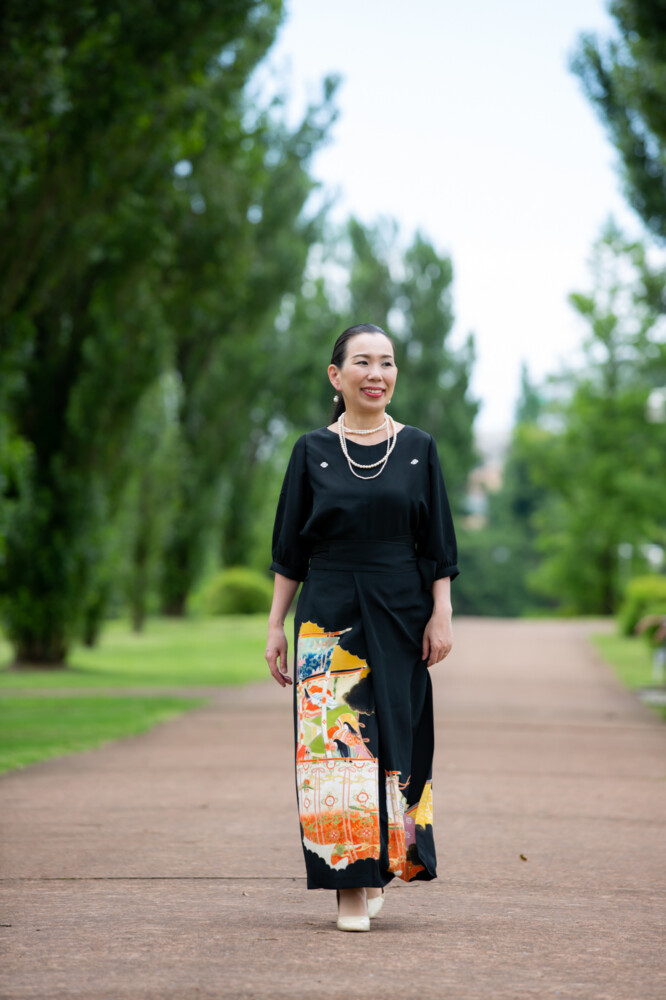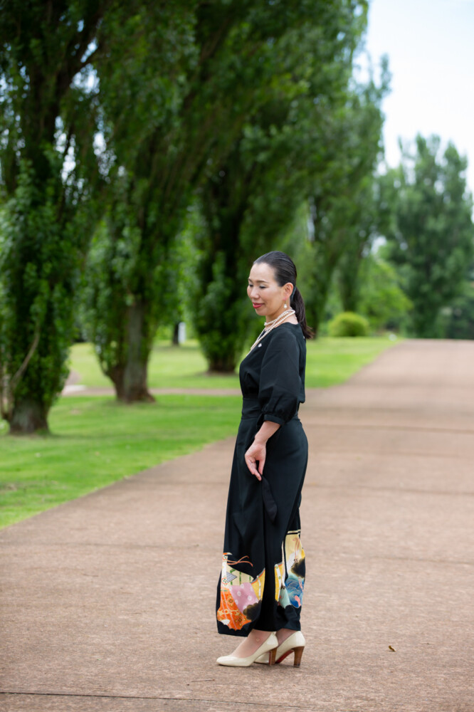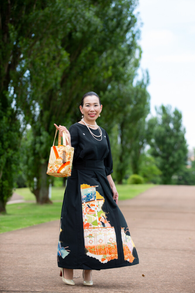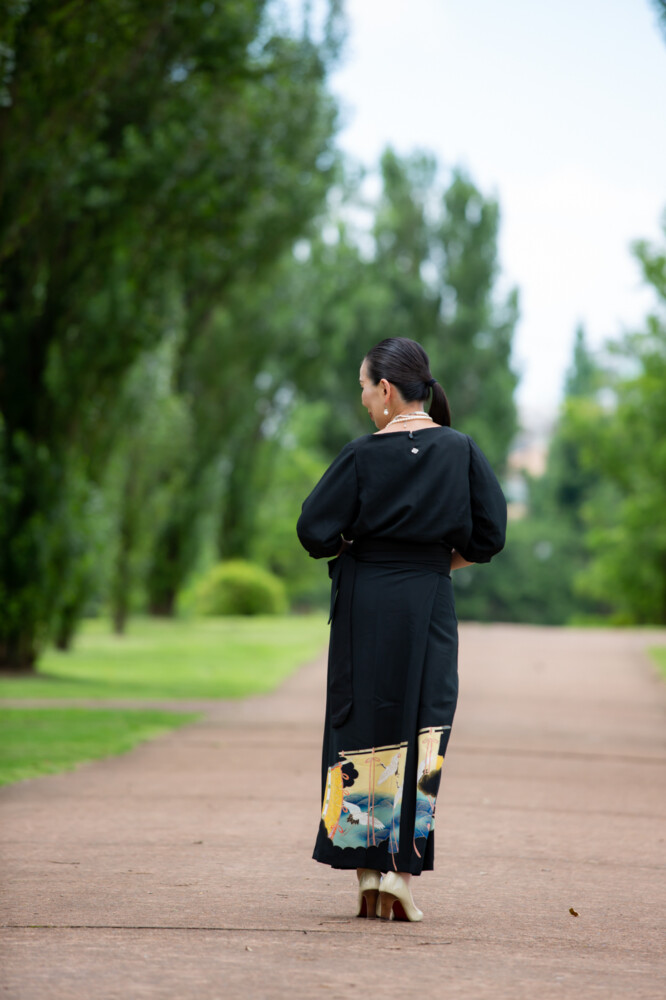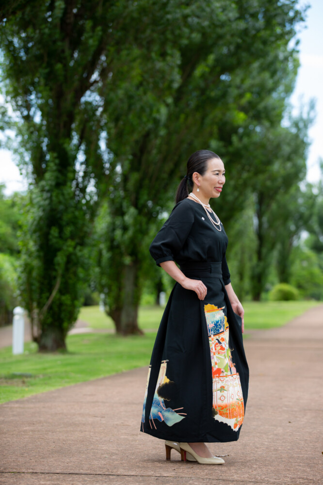 ブラウスには横木瓜紋を背中の中心と胸に2つあしらいました。