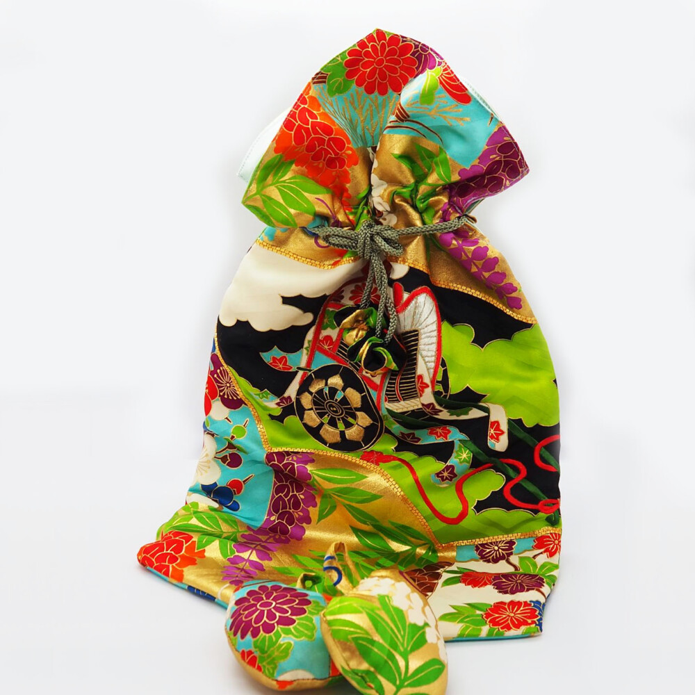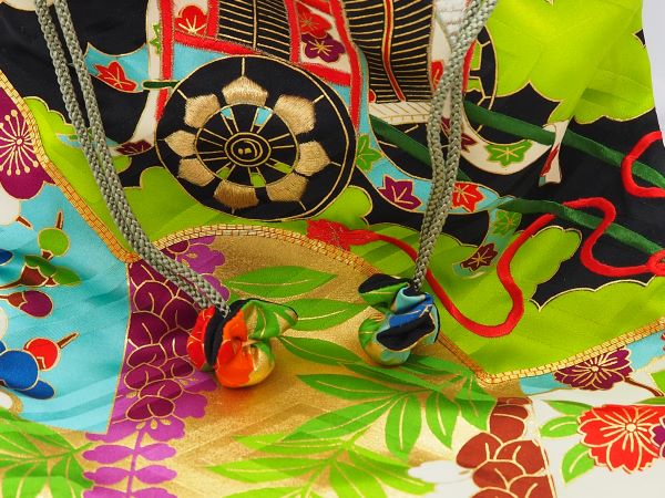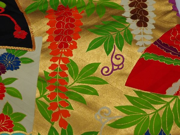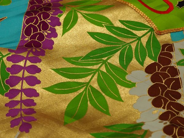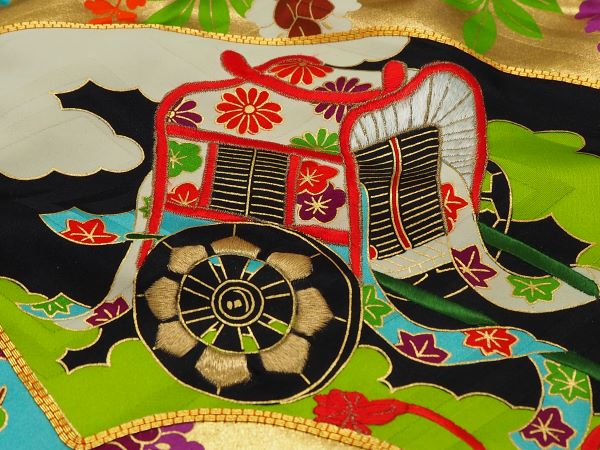 平安時代の貴族の乗り物「牛車」の別称で、『源氏物語』の世界を象徴する雅なものとして「源氏車」とも呼ばれる「御所車」と、四季の草花や草木を取り合わせて文様化した「四季草花」