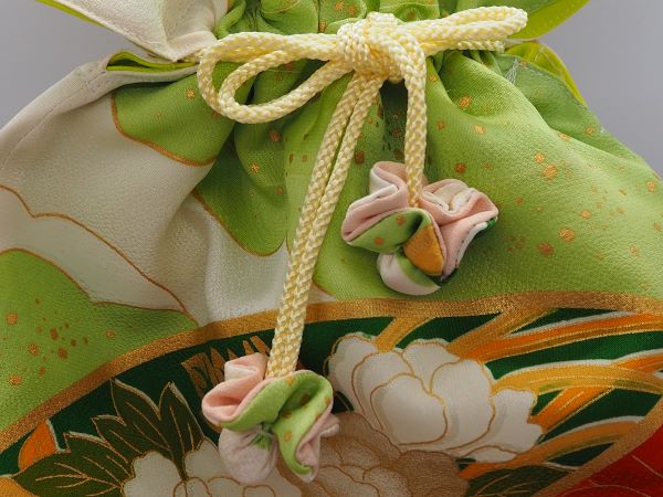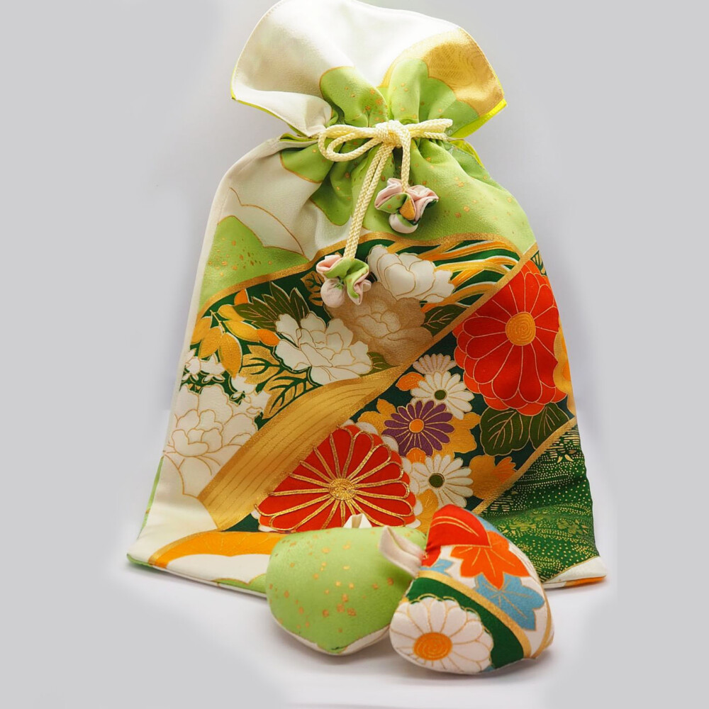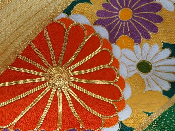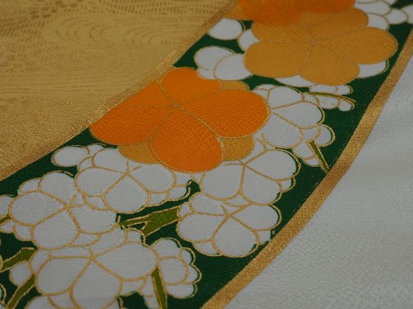 シャクヤク、菊、梅の吹き寄せ文様。雲取り柄。
