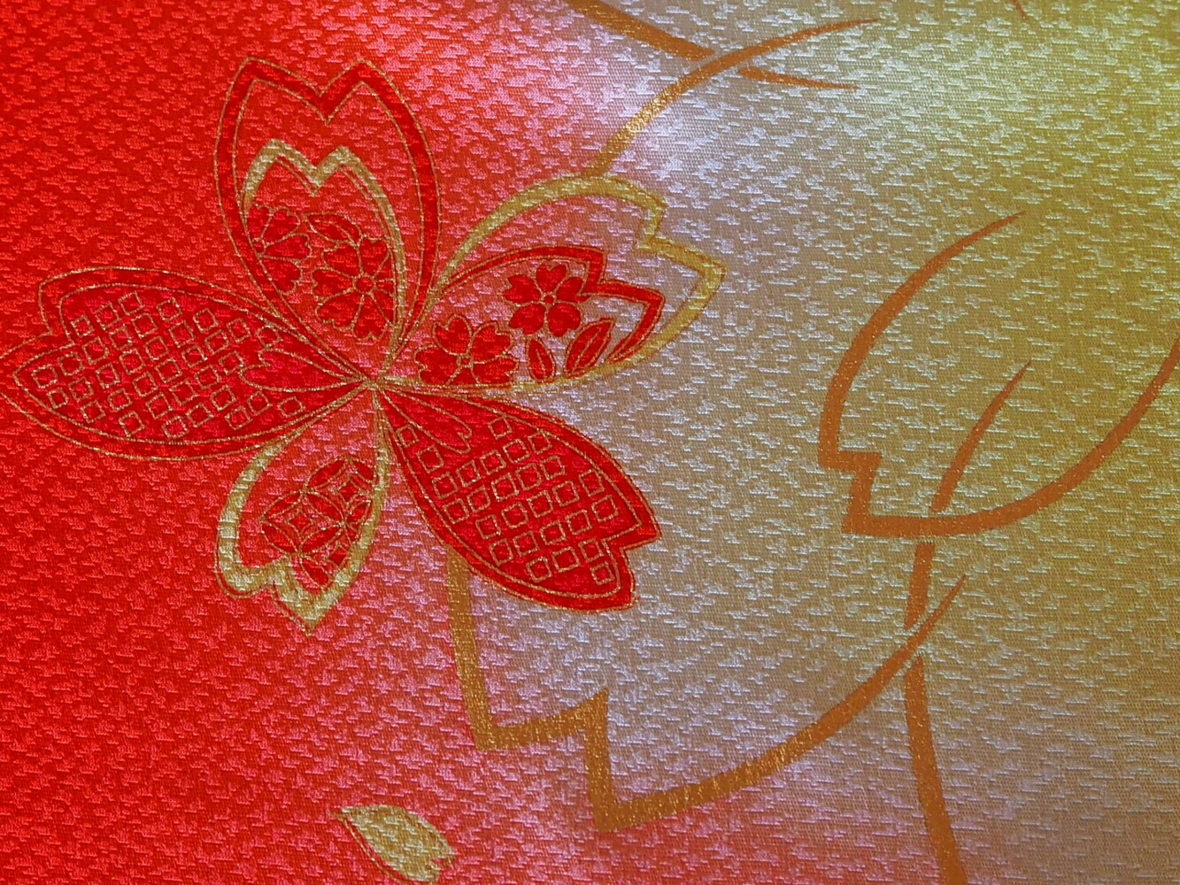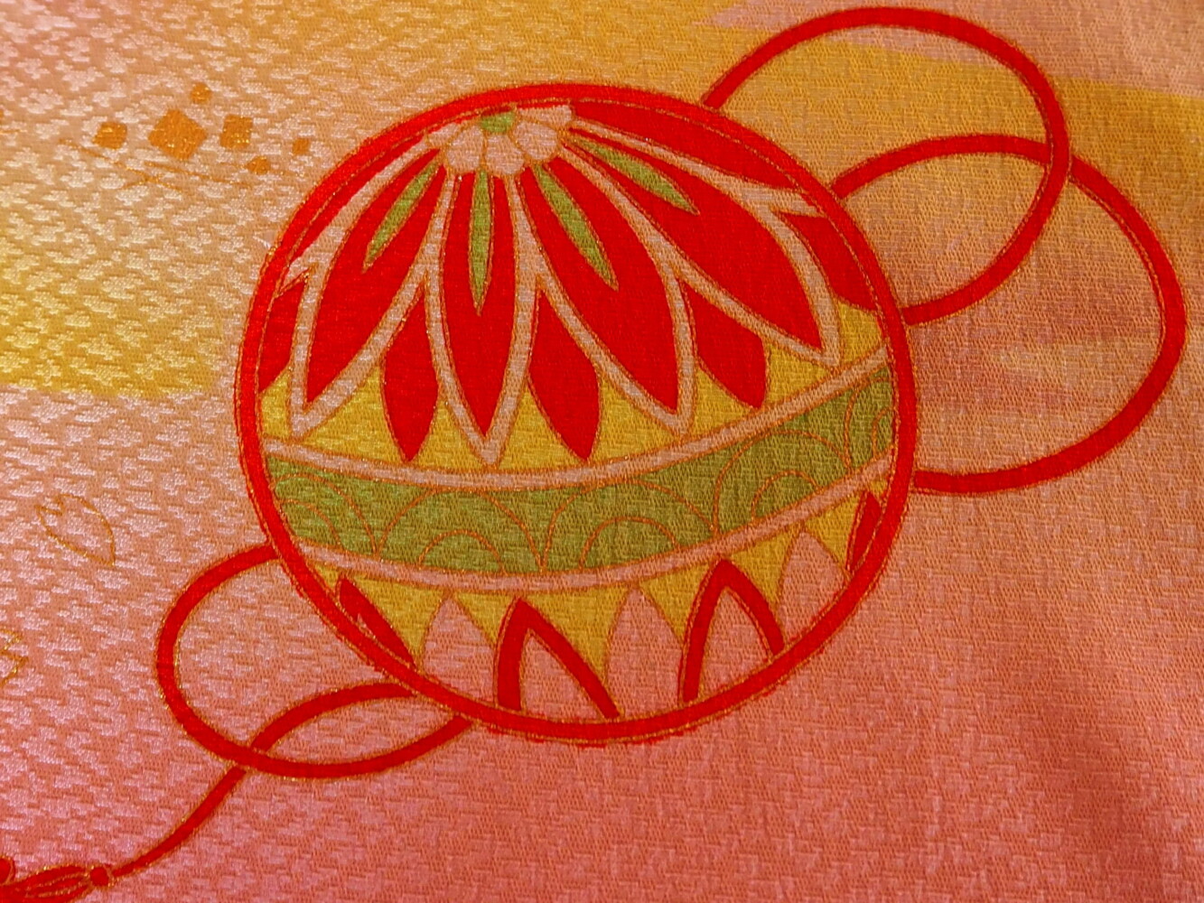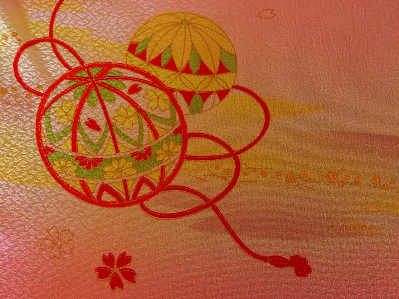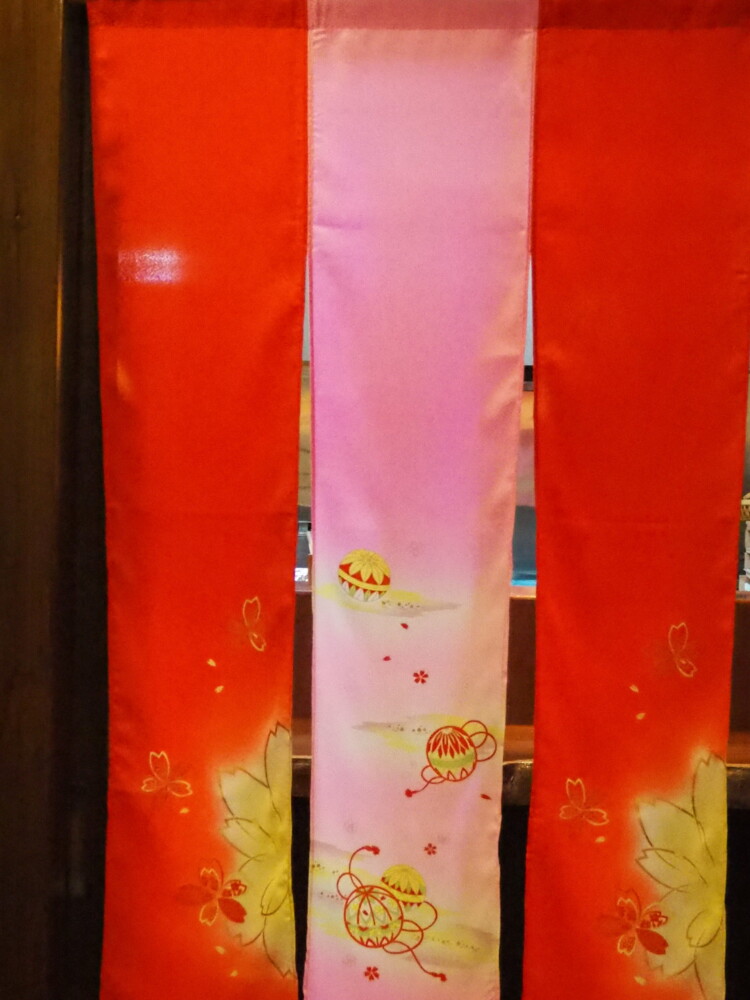 桜や手毬柄の志古貴(しごき:七五三や花嫁衣装に使われる抱え帯)で暖簾に仕上げました。