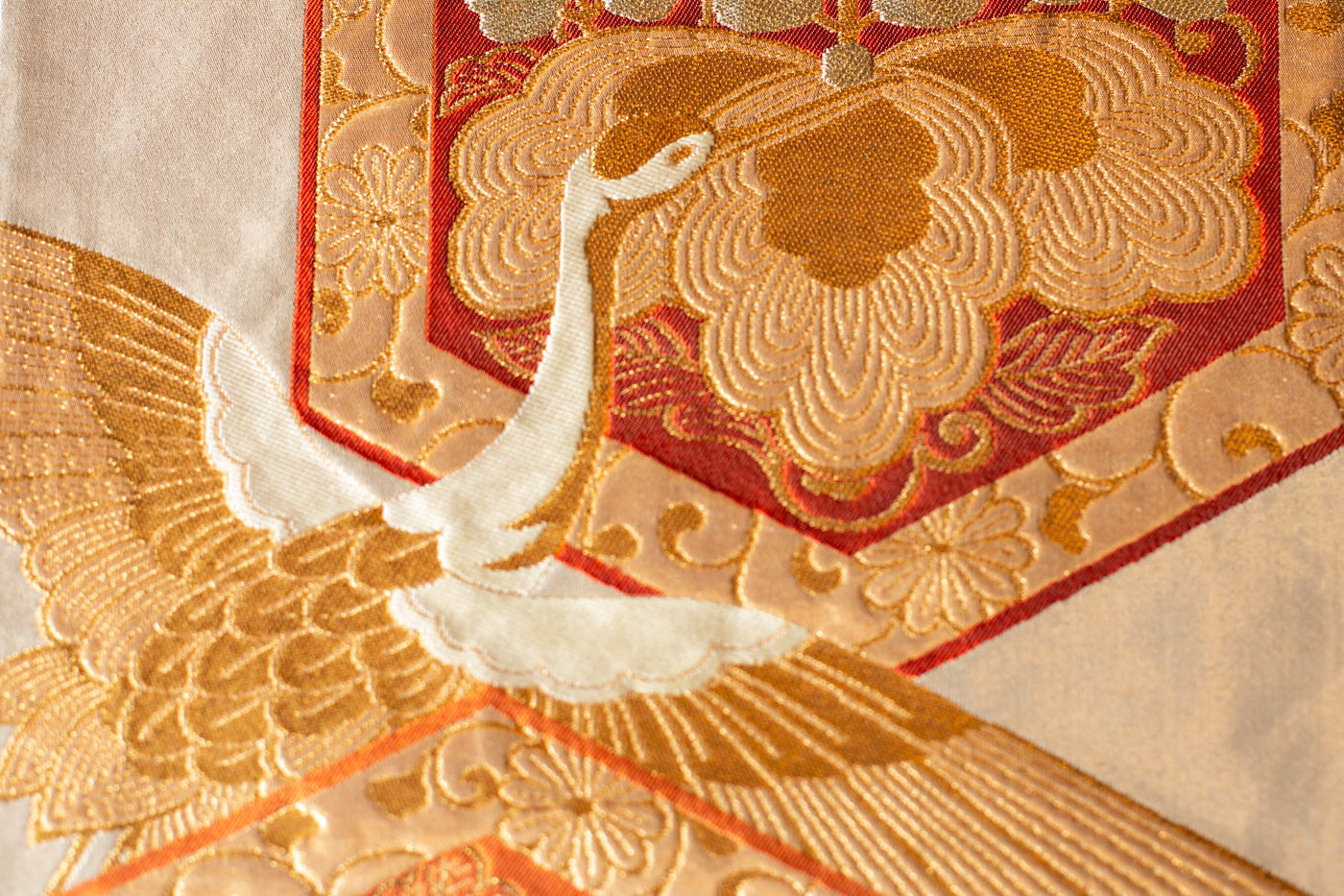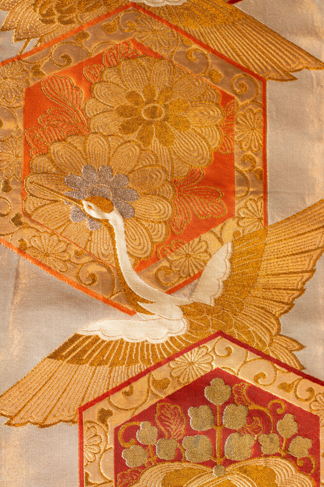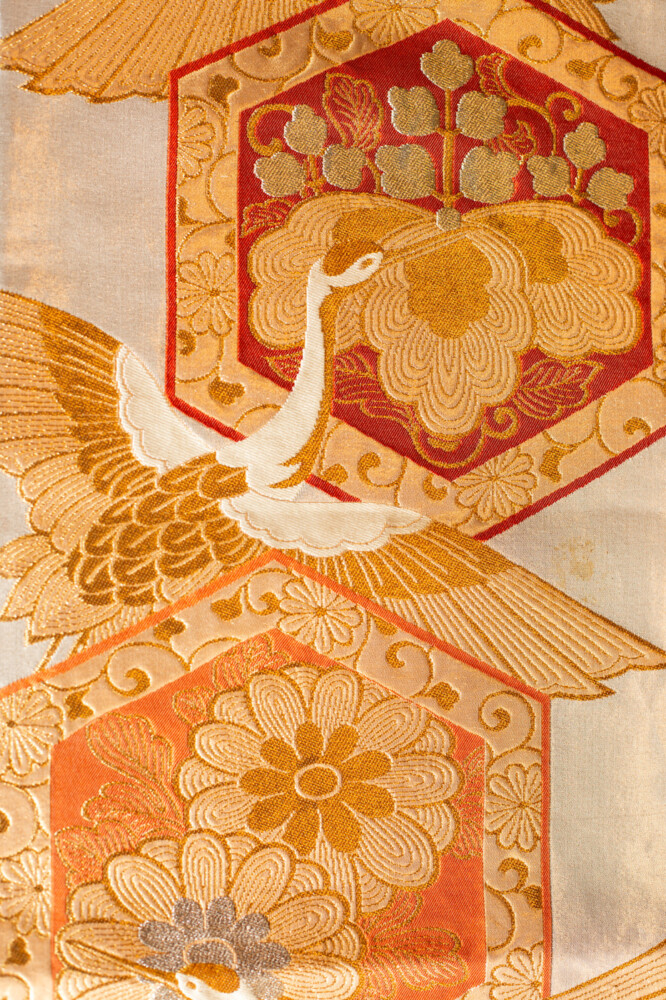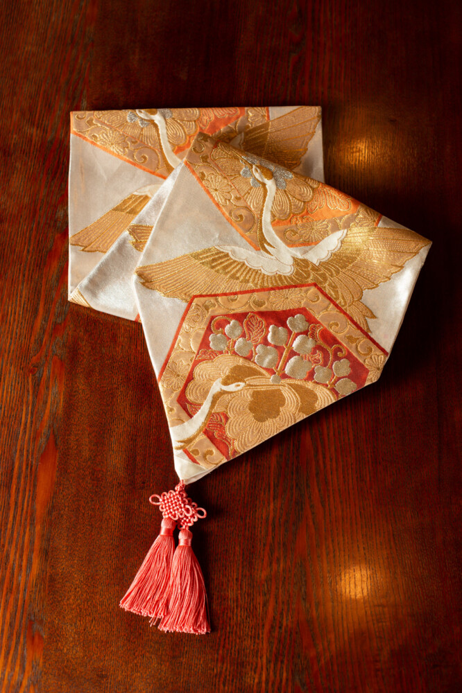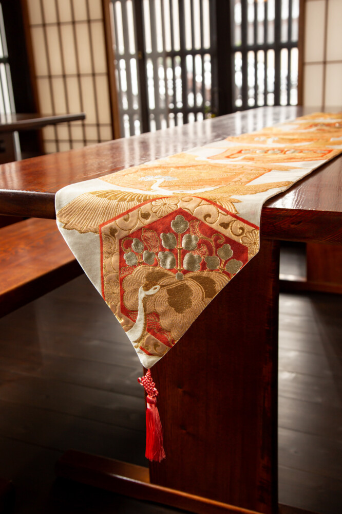 存在感のある桐文様に花菱亀甲と鶴文様の錦織がとてもゴージャスなテーブルランナーに仕上がりました。